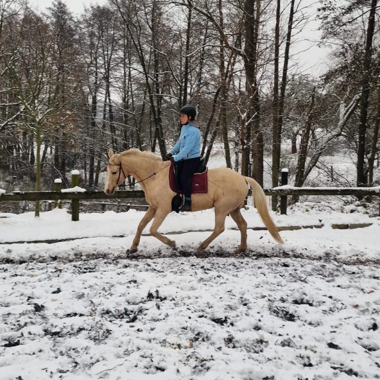 Im Sommer 2023 entschied ich mich dazu, mit meinem Pferd den Stall zu wechseln, da ich wahrnehmen konnte, wie es meiner Stute immer schlechter am alten Stall erging. Sie war am alten Stall in (falschem) Beritt. Dadurch fiel sie körperlich als aus mental komplett zusammen. Sie entwickelte eine immense Panik vor Peitschen und Gerten. Durch eine Freundin wurde ich schließlich auf Annika aufmerksam. Ich kontaktiere Annika und fragte sie ob sie für uns als Trainerin noch einen Platz frei hätte. Am neuen Stall angekommen, stand für uns erstmal Aufbautraining auf dem Plan. Annika konnte sich in uns hineinversetzen und uns in jeder Hinsicht Unterstützung und Zuversicht bieten.